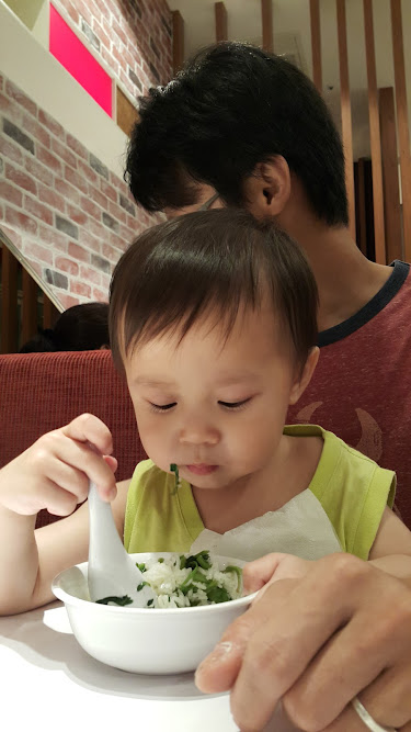 讓這不太愛吃菜的小子 不知道是餓了 還是好吃 居然悶著頭一直吃著這只有空心菜跟白飯
